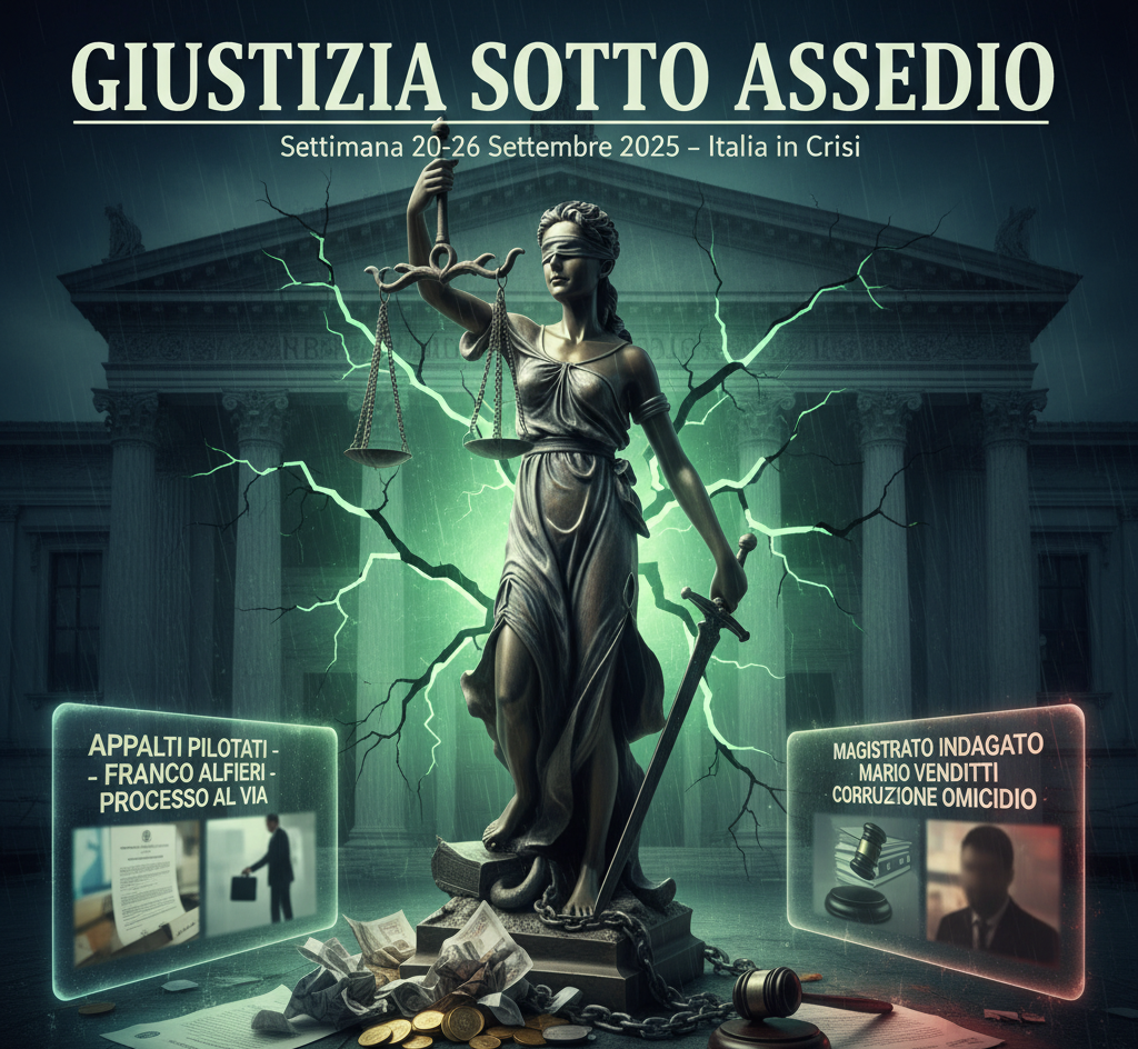 La settimana compresa tra il 20 e il 26 settembre 2025 si è imposta all’attenzione nazionale come un momento di profonda crisi per la fiducia dei cittadini nelle istituzioni italiane. Due vicende giudiziarie distinte, ma convergenti nel loro impatto corrosivo, hanno dominato la cronaca: l’avvio del processo per appalti pilotati a carico dell’ex potente politico salernitano Franco Alfieri e, con un’eco ancora più inquietante, l’apertura di un’indagine per corruzione a carico dell’ex procuratore di Pavia Mario Venditti, in relazione a uno dei casi di omicidio più mediatici del Paese. Questi eventi non rappresentano semplici episodi di cronaca, ma si configurano come sintomi di una duplice patologia: da un lato, la corruzione endemica nella gestione degli appalti pubblici locali; dall’altro, una sfida senza precedenti all’integrità stessa del potere giudiziario.